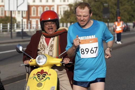 無論是梅姑或者正宗首任與第二代的「星女郎」,這群女子的犧牲奉獻﹝抑或傻勁?﹞無非都是為了至今仍讓世間男女議論紛紛是否真「無價」的愛情兩字。而「愛情」來到了《求愛馬拉松》這部電影裡,不同於星爺總能夠吊兒啷噹地被女性呵護全身而退,女主角譚蒂紐頓被前一任未婚夫晃點在先,看清下一任未婚夫的真面目於後;男主角賽門佩格﹝Simon Pegg,請注意,Last Name不是ge結尾,不唸「吉」﹞在當愛已成往事後才想起舊愛還是最美,無奈大勢已去,能怎麼辦?只好硬著頭皮、挺著肚皮跑起馬拉松,愛妳愛到跑死自己!
