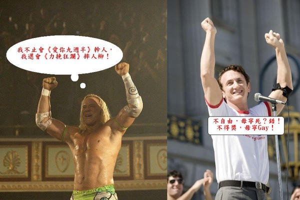 乍看之下,米基洛克似乎也有那麼一點走西恩潘老路的味道,可差之毫釐,失之千里吶 ~ ~ ~ 他聲勢不弱,但私生活一團亂的先天不足,以及上個月剛頒完的演員公會獎最佳男主角敗在西恩潘手下的後天失調,頓時整個弱掉,好萊塢品優質佳的老江湖多如過江之鯽,不需要再供奉可能得了獎後又馬上煙消雲散的骨灰罈一盅,觀眾不想要吃鹹魚,我們喜歡欣賞金魚。