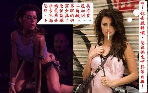 我的小潘潘以《玩美女人》入圍過奧斯卡最佳女主角之姿,降貴紆尊至最佳女配角戰場,《情遇巴塞隆納》裡的她戲份雖少到只比客串好一點,但不代表她得獎機會變小,只要出場夠耀眼,君不見不折不扣憑客串而拿到最佳女配角的前人不就有《莎翁情史》的茱蒂丹契!