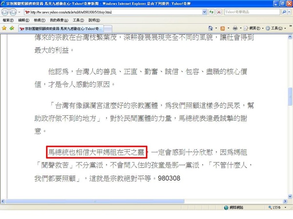 「宗教團體照顧濟助貧弱 馬英九感動在心」