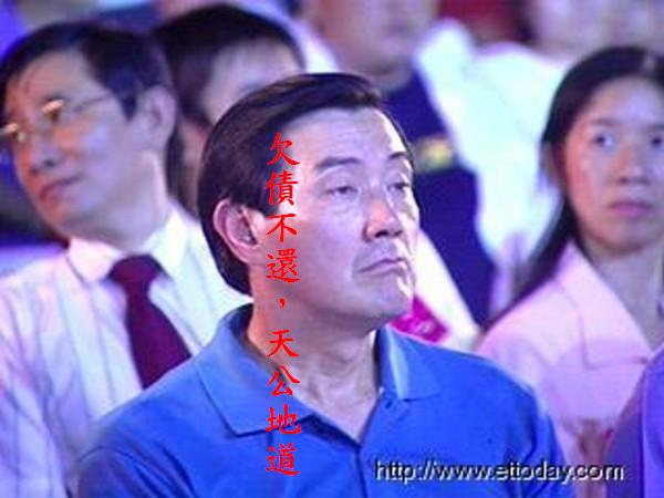 尤其尤其全國首善之都台北市更是出類拔萃,拔尖兒的很呢!噁呵 ~ 可能是自前任台北市長馬英九開始舉辦的路跑活動辦多了,所以馬英九好能體恤「跑路人」的艱苦,索性來個「苦民所苦」的功德政績,不僅可以幫自己舔菊花,還能順勢昭告全國:從今天起,欠債不還,天公地道,如果還不起,免驚,這把子國家幫你扛了!