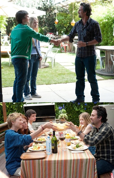 當你看到安妮特班寧入鏡的第一場戲,豪邁灑脫地向妻子與兒女報告自己的子宮肌瘤全割掉時,你就知道她出神入化的舉止神態萬無一失地中了:妝淡到近乎素顏,邊走路邊拉褲腰頭,張口徒手剔牙,就算你不認識女同志,你也會一目瞭然何謂T/公,她,一整個就是丈夫/爸爸!「一家子」首次於餐桌上正式交手,當「授精之家」碰上「精援之父」,當「一家之主」的安妮特班寧對上「一家之精」的馬克魯法洛,安妮特班寧能做的,只剩盤問式地「面試」對方,安妮特班寧的眼神中所露出的那股充滿防禦性的敵意,不可不謂凶光。