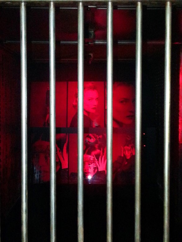 本次展覽劃分為三個區域,其中之一是以監牢的概念來傳達女性被壓抑的哀愁﹝怨念或許精確點﹞,場景的氛圍很是陰森詭異,雖說如此,但低壓的空氣下,卻又瀰漫著一股醉心的氣息,就如同Bruno Mars所演唱的全球大熱金曲【Locked Out Of Heaven】般,歌名雖憂傷,旋律卻發燙,我們雖受表面所惑,卻也摸透惡鬥的困獸。